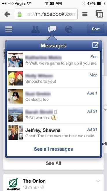a. Directly sending & receiving messages within Facebook (mobile browser-based version);