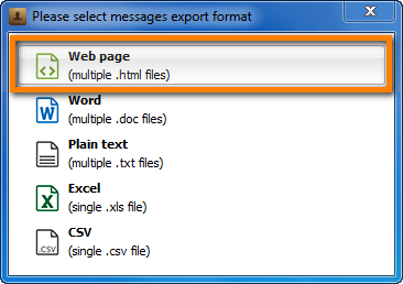 4. Now choose the output backup format as you like. For example, if you'd like to interact with the backed up messages, Web page (.html) format is recommended.